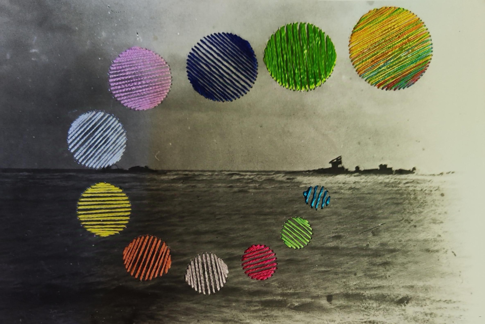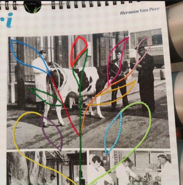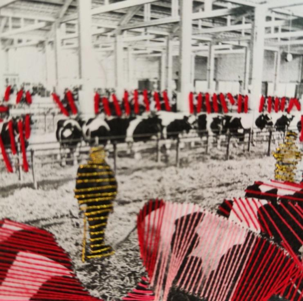 For this project, Joanna made a collage of old photos in which she wanted to emphasize the connection between people and the cattle for slaughter. She also edited the 2023 calendar, published by Archipel, with embroidery art.