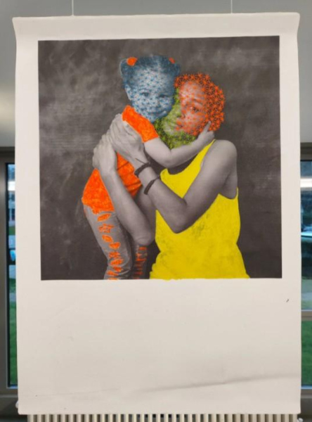 To immortalize this unique fact, photos of special moments were enlarged to A3 size and edited with embroidery art. The same photos were also printed several times in postcard size, each time being edited in a different way with embroidery art.