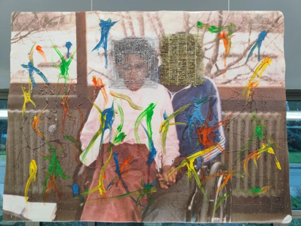 Most of the words were written some time ago, but in this project they came together with some family photos that were enlarged on canvas and edited with embroidery art and acrylic paint.