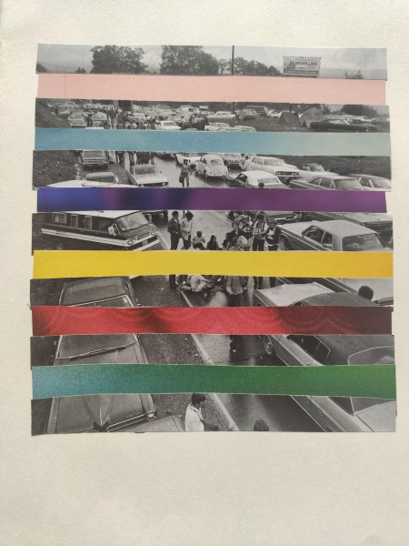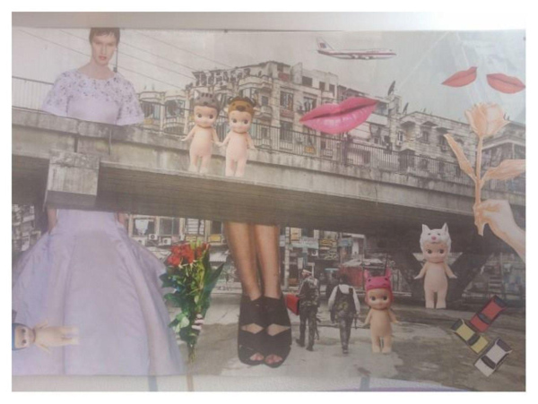 the larger collage works were only made with photos found in magazines, nothing was printed in advance